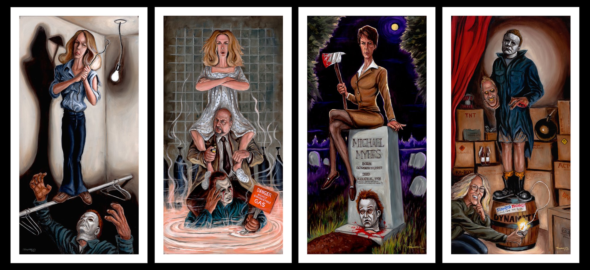 "Haunted Haddonfield Stretching Portraits" Prints (inspired by the "Halloween" film series)